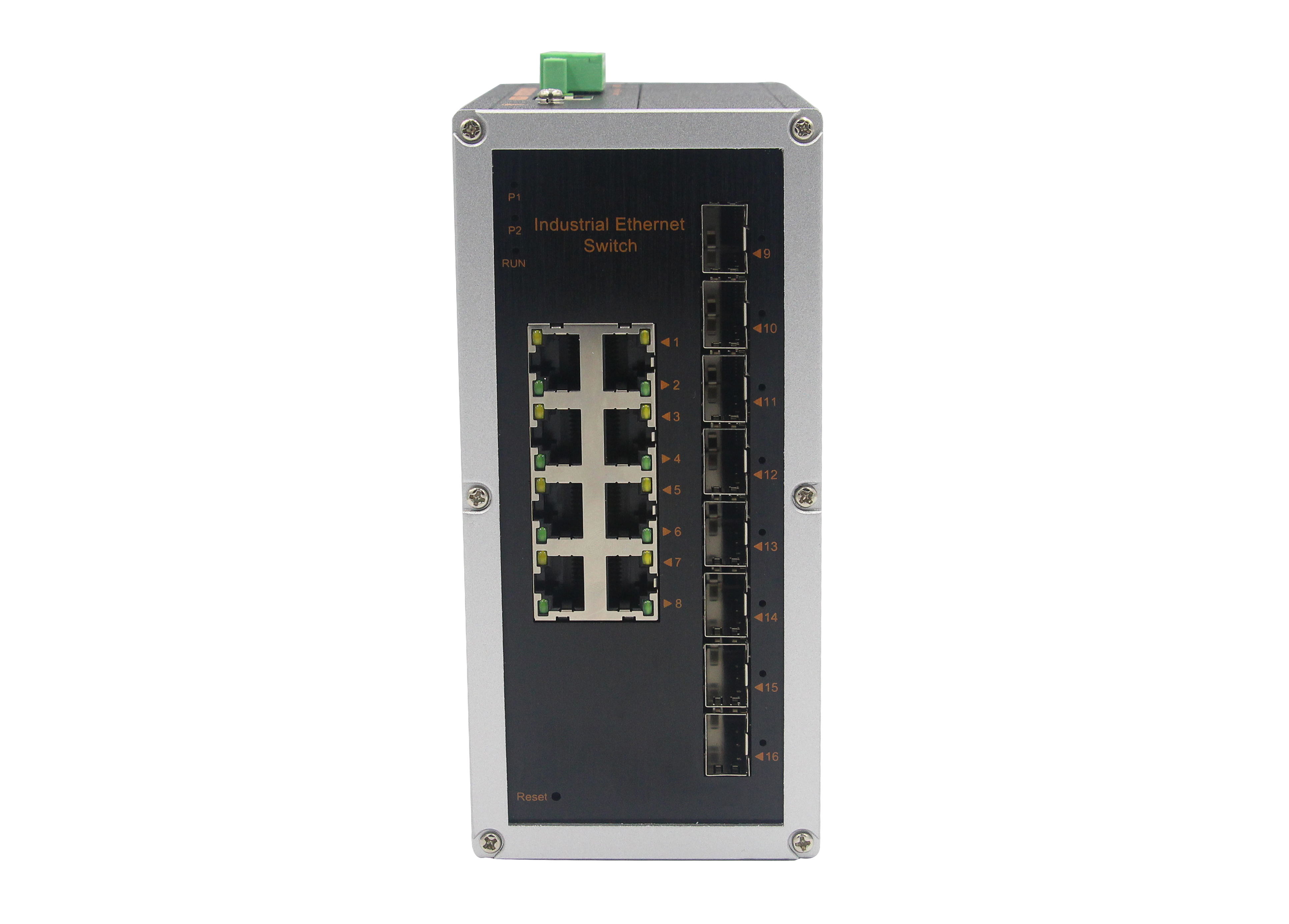 8個千兆光+8個千兆電、SFP接口(不含光模塊)、導軌式、DC12-52V供電 |